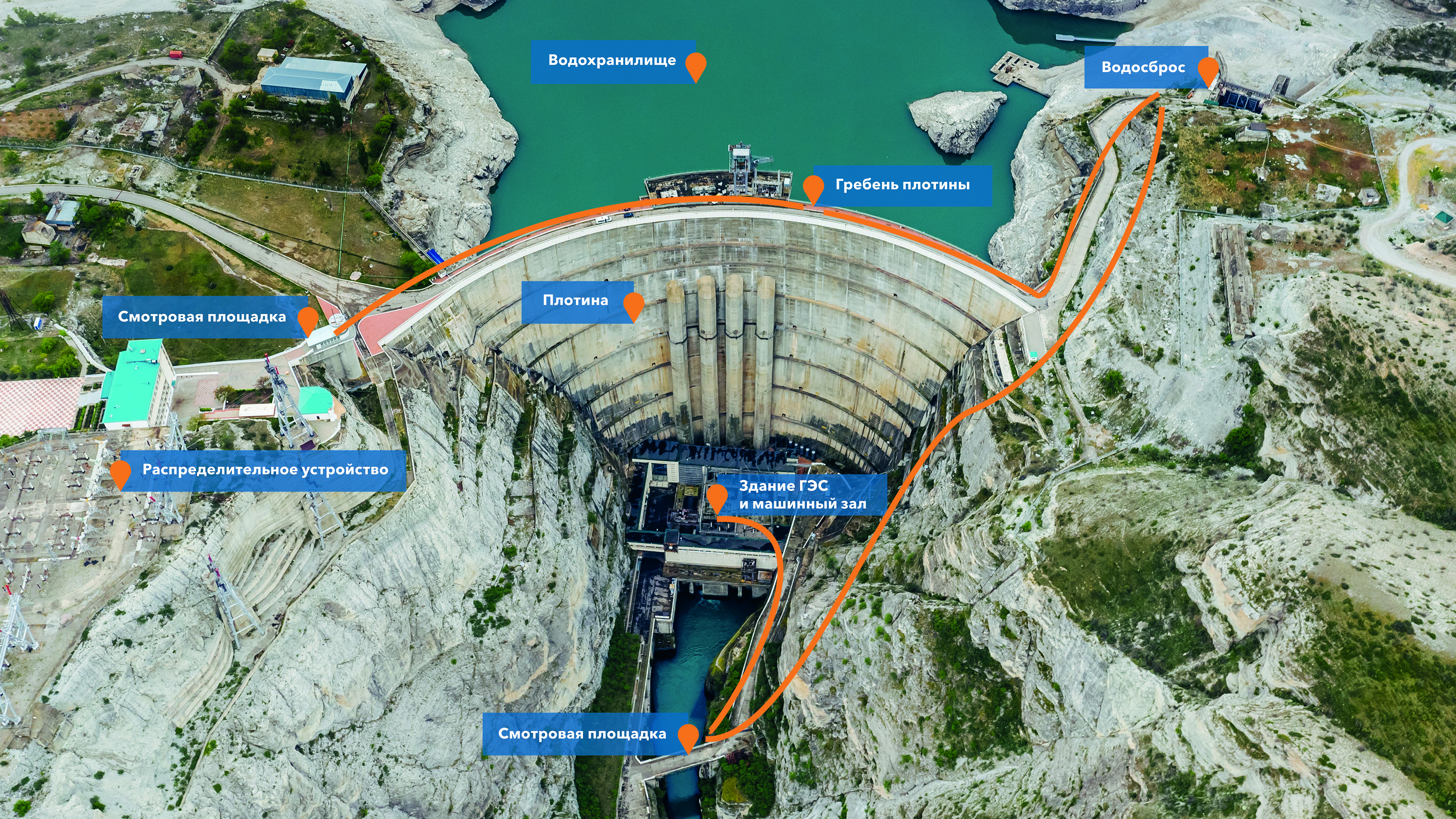 About the tourIntroduction to the Chirkeyskaya HPP will start fr om the most beautiful waypoint – the observation deck of the upper stream, from wh ere an incredible view of the mountain gorge opens up. After that, you will visit the construction museum, step down to the emergency spillway and have a walk along the lower stream. You will be offered to continue the journey to Miatlinskaya HPP