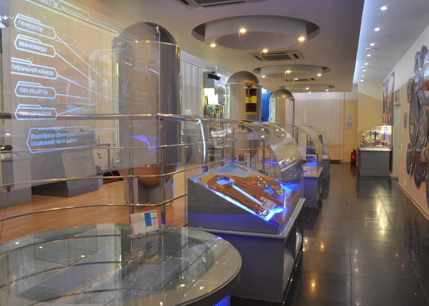 Музей сочетает в себе площадку для проведения обучающих мероприятий для сотрудников ПАО «РусГидро» и экспозицию, которая рассказывает об истории развития гидроэнергетики, выработке и передаче электроэнергии, строительстве и устройстве ГЭС, выдающихся людях профессии, гидроресурсах Земли. -